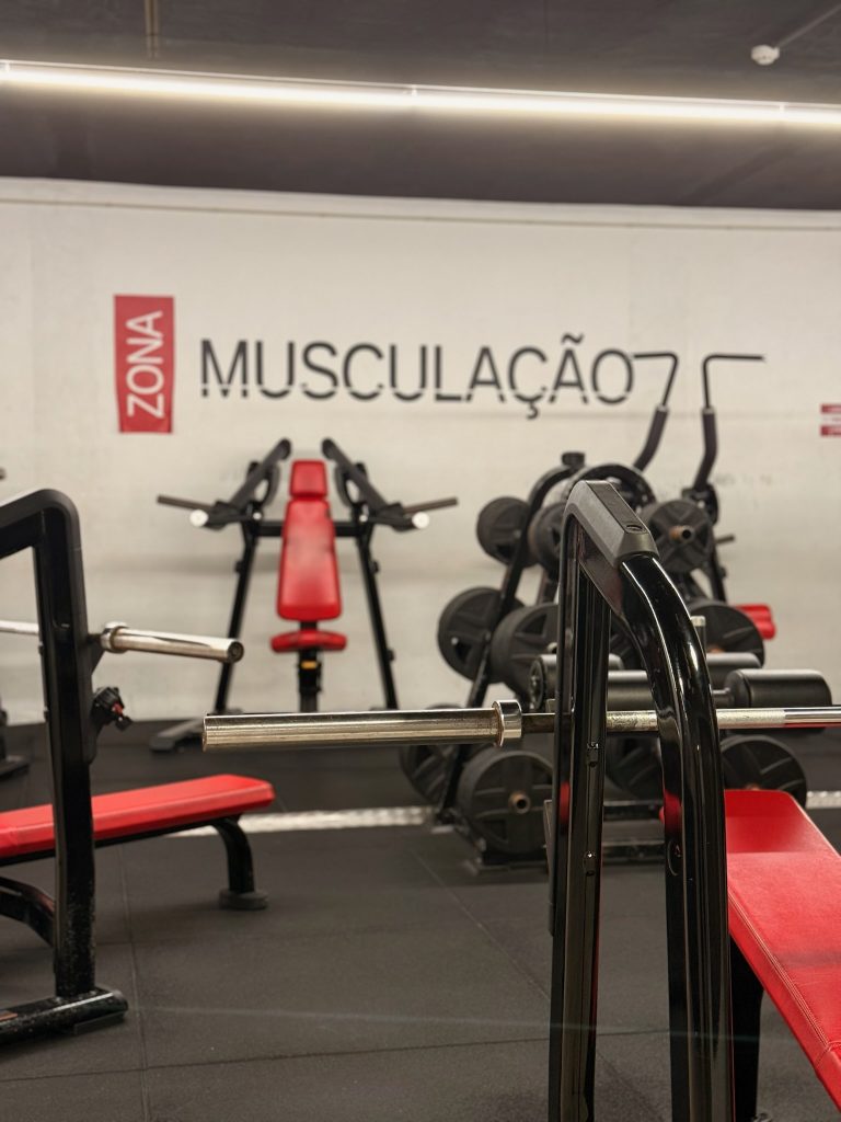 - Duas zonas de Musculação onde tens ao teu dispor máquinas de treino localizado e zona de treino com pesos livres